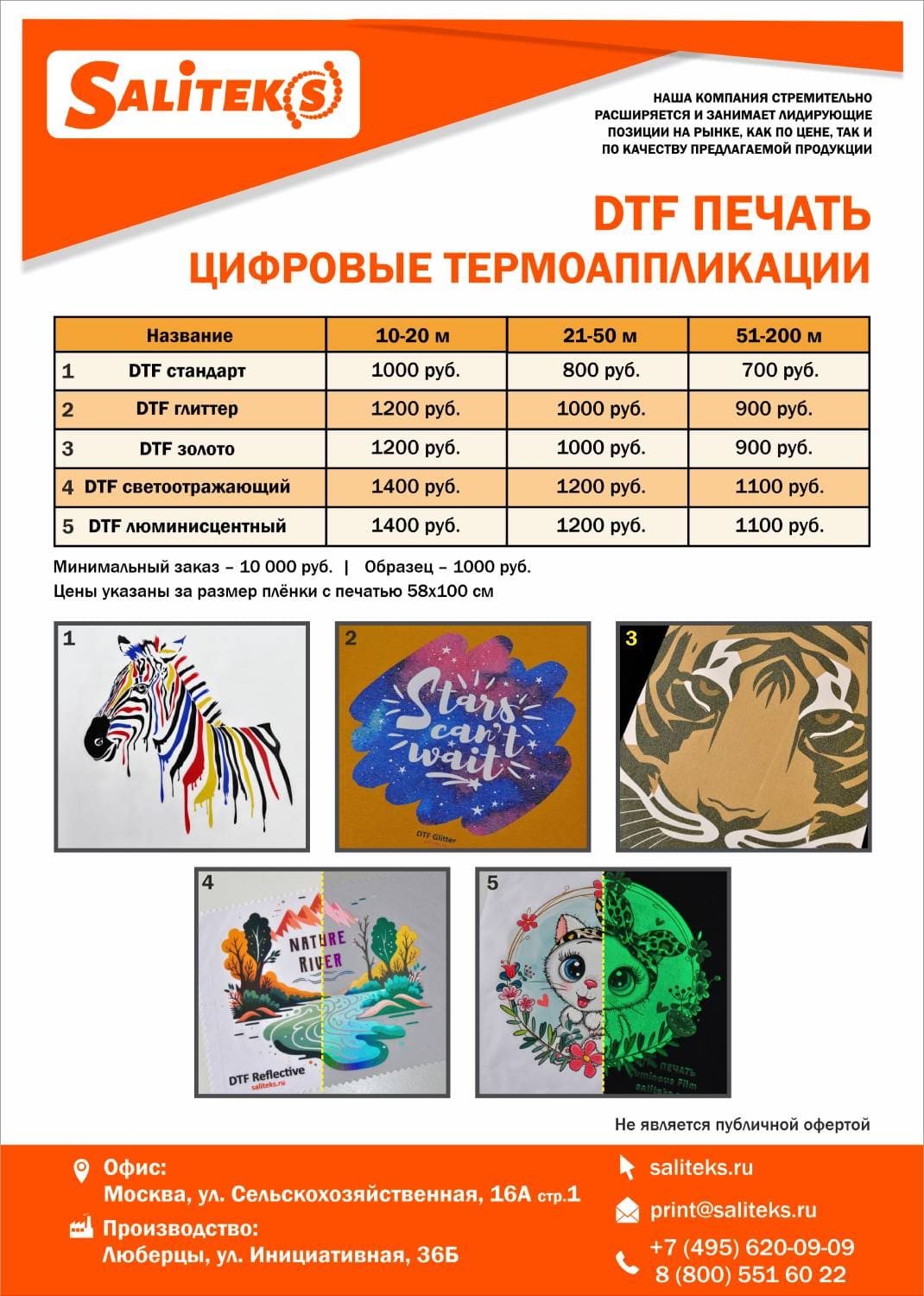 | DTF люминисцентный | 1400 руб. | 1200 руб. | 1100 руб. |