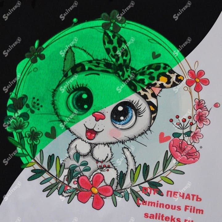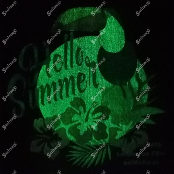 Компания Saliteks занимается оптовой ДТФ печатью с фотолюминисцентным эффектом, мы переносим изображения, надписи, символы на ткань, крой, одежду клиента. Перенесенный принт не отстает от основы, важно стирать такие изделия только через 24 часа в вывернутом наизнанку виде. Работаем только с материалом заказчика – допускается перенос на ткани разного смесового состава и цвета. Принимаем заказы в Москве, по всей России, со стран ближнего зарубежья и Европы.
