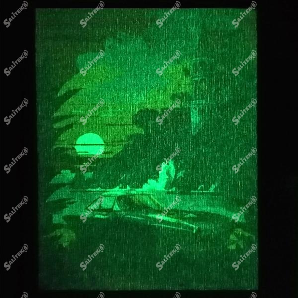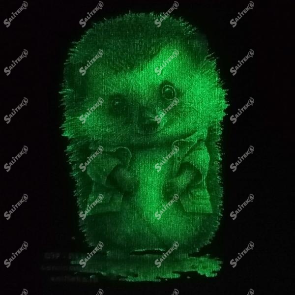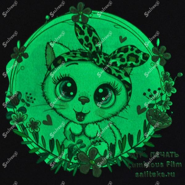 ДТФ с люминисцентным покрытием - новинка в области печати. Специальная пленка покрыта светонакопительными частицами, которые переносятся на материал совместно с рисунком, в течение пары часов покрытие поглощают солнечный или искусственный свет, в результате чего изображения, напечатанные на ней, светятся в темноте.