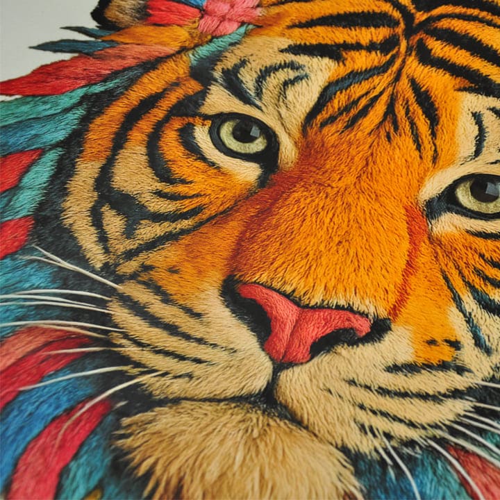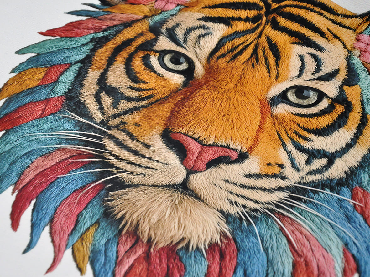 - Свобода дизайна. Можно создавать мелкие детали, градиенты, фотографическую точность — все, что невозможно реализовать в классической вышивке из-за технических ограничений.