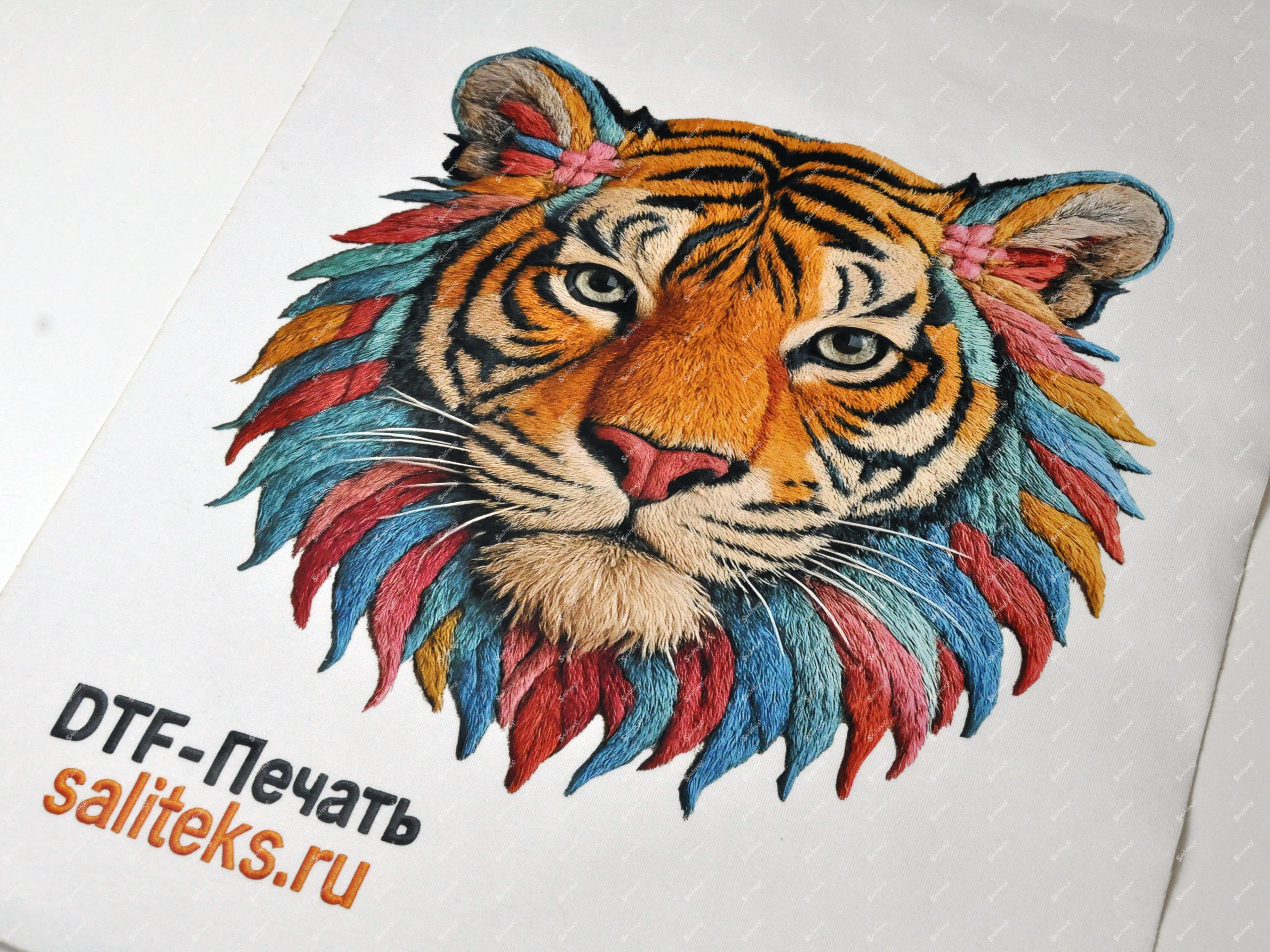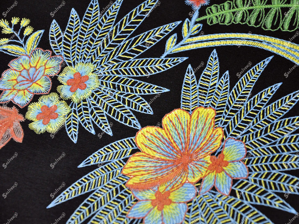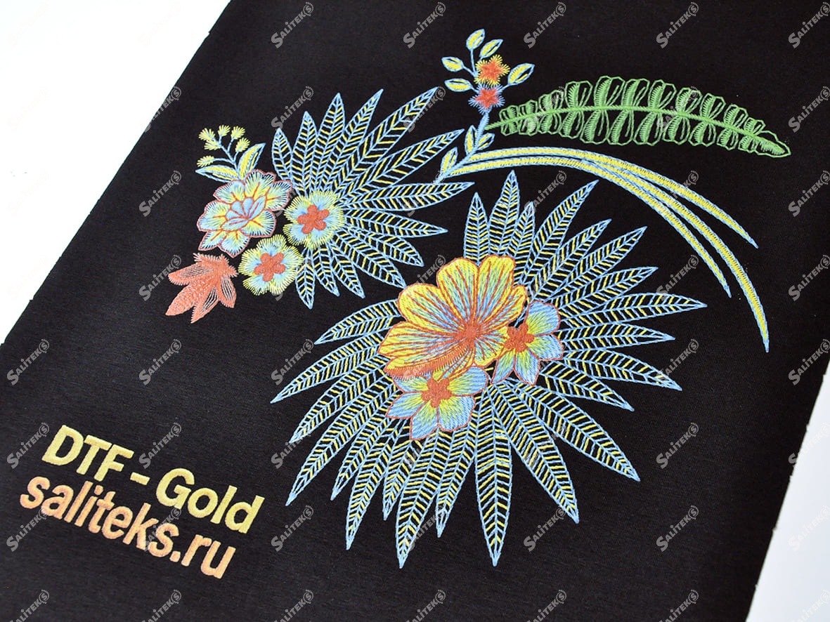 Вы можете заказать услуги по нанесению имитации вышивки методом ДТФ в «Салитекс» — у профессионального исполнителя. Мы работаем оптом. Минимальный заказ от 10 м. Принимаем в работу ткани клиента в рулоне или крой.
