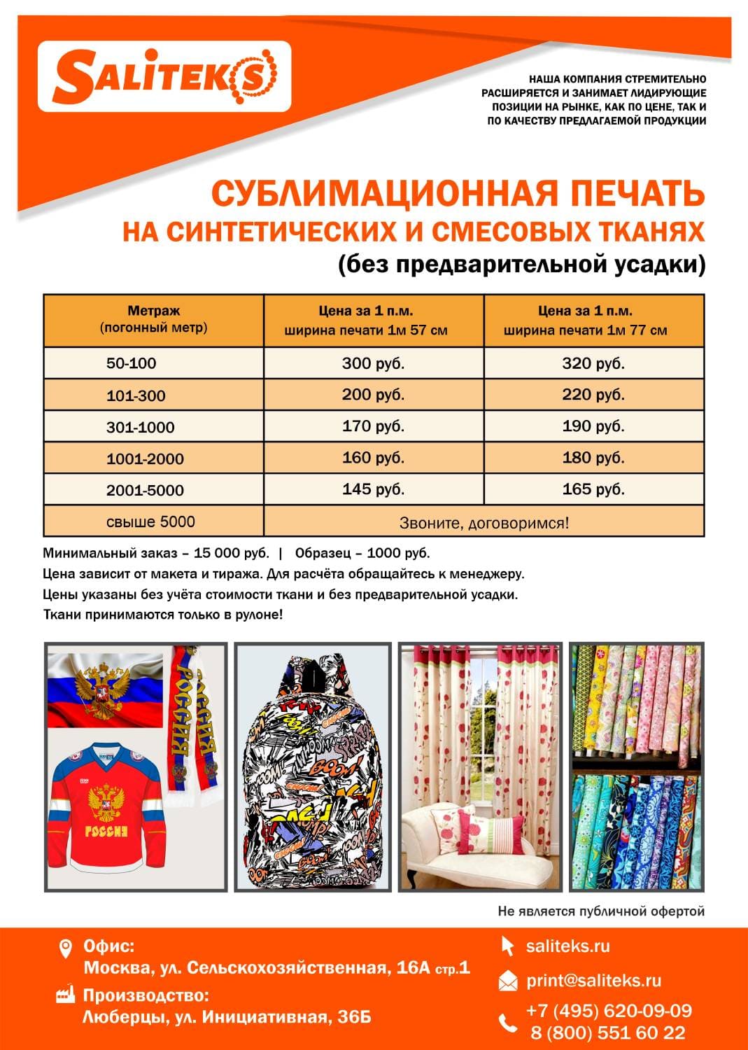 Минимальный заказ - 15 000 руб. | Образец - 1000 руб.