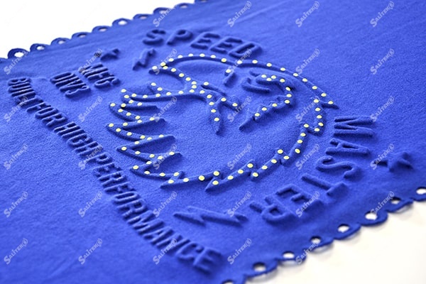 Комбинированное тиснение со стразами выполненное на тканных поверхностях, имеет такие несомненные достоинства как: