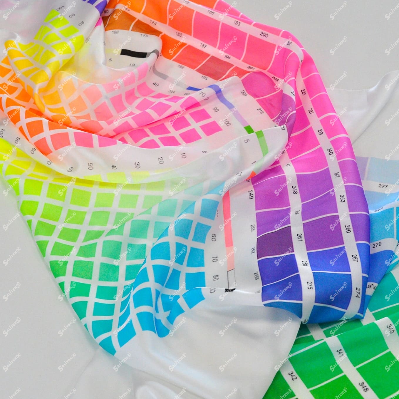 Мы делаем цветопробу на отрезах материи, предоставляемых клиентом.